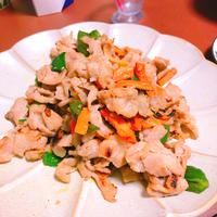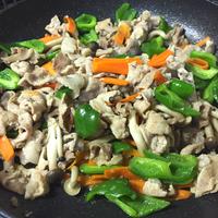 - 4 豚バラ肉に火が通ってきたら、1と調味料を入れ、中火のまま3分程炒めます。味がなじんだら火を止めます。