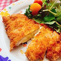 マヨネーズだけでも何とか崩れずできました。重ねていく時に抑えるようにして、衣をたっぷりつけたらザクっと仕上がりました!タレはケチャップ&マヨネーズでいただきました♪