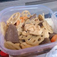こんにゃくと鶏肉が分量よりも少なめだったので、にんじんを大きめの乱切り+レンジで余熱して追加しました。
