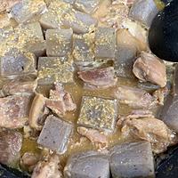 - 2 鶏もも肉の色が変わってきたら、水、(A)を加え3分程煮ます。