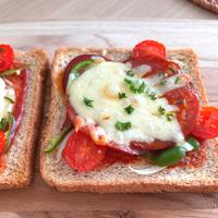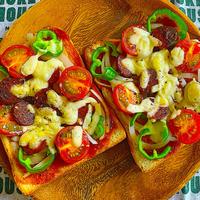 基本的なピザトーストのレシピです。ピザ用ソースの代わりにケチャップを使い、ありあわせの野菜とサラミ、チーズを組み合わせて、朝食にもランチにも、お子さんのおやつにも、お酒のおつまみにも合うひと品です。ぜひ作ってみてくださいね。