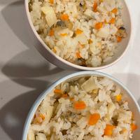 タケノコは120gだった為、残りを人参で同gに、あさりは120gだった為、しらす60gを足して、しょうがもチューブで作らせて頂きました。