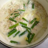 豆乳がなかったので牛乳で作りました。鶏団子がふわふわで生姜も効いて優しい味でとても美味しく出来ました。