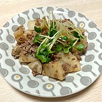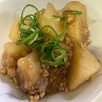 長芋を鶏ひき肉と合わせて煮物にしました。長芋の歯応えに、鶏ひき肉の旨味が、生姜風味のしょうゆだしとよく合います。お好みの肉を入れるとアレンジが広がります。お好みで一味唐辛子を入れても美味しく頂けます。是非お試しくださいね。
