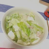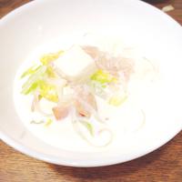 - 1 白菜を3センチ幅に切ります。木綿豆腐を食べやすい大きさに切ります。薄切りハーフベーコンを1センチ幅に切ります。ニンニクをみじん切りにします。