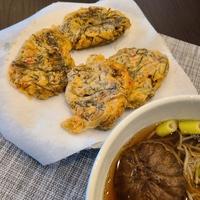 まな板も包丁も使わずぱぱっとできました。小エビがあったので風味付けに混ぜました。フワッとした食感で美味しい。お蕎麦に乗せて天そばにしました。揚げ焼きでできるので油も少量ですみますよ。