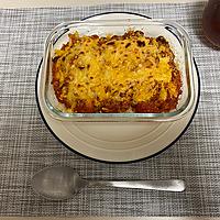 4人分として豚ミンチ300g、トマト缶1つ(400g)、コンソメ1キューブ。オーブン250度で7分ほど。仕上げに乾燥パセリ。美味しく出来ました。