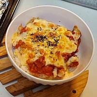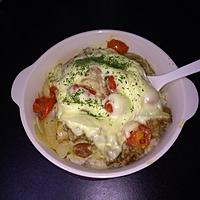 トマト缶の代わりミニトマト、玉ねぎ入れて、牛乳と小麦粉 投下してクリームソースに。よってクリームチーズドリアになりました。美味しかったです。