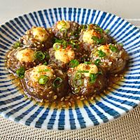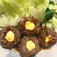しいたけのかさにミニハンバーグを詰めたキュートな一口おかずです。真ん中にはマヨネーズを乗せ、まろやかに。タレは甘じょっぱくてごはんが進む味!夕飯のおかずにもぴったりです。ぜひ作ってみて下さいね。