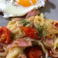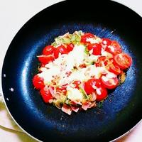 フライパン一つでさっとできる簡単な炒め物レシピです。ミニトマトの酸味とベーコンのコク、玉ねぎの甘みが合わさって美味しいです。チーズを加えなくても十分美味しいので、その日の気分に合わせて作ってみてくださいね。