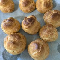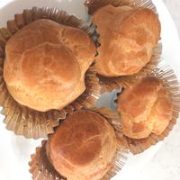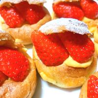 生地のレシピだけ使わせてもらいました!生クリーム無かったのでカスタードを作って余ってたいちごをのせました!シュークリームは2回目ですが私のオーブンは火力が強いようで1回目は少し焦げてしまい、今回は調節しました!!12個と書いてありましたが大きめにしたので9個出来ました。成功して良かった~☆