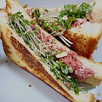 コンビーフとチーズのホットサンドのレシピの紹介です。ジューシーなコンビーフの旨味ととろとろのチーズが好相性です。たっぷり入れたブロッコリースプラウトが後味をさっぱりさせてくれますよ。ぜひ作ってみてくださいね。
