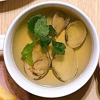 - 6 器に3のはまぐりを盛り付けて、アクをとった5をかけ、1を乗せたら完成です。