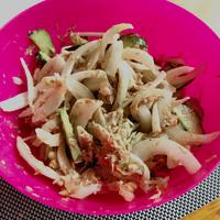 新玉ねぎと水煮缶、サニーレタスを合えました。ポン酢プラスマヨネーズ入れて…