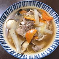 - 2 白菜は1cm幅に切ります。にんじんは薄い半月切りにします。しいたけは薄切りにします。