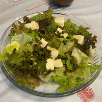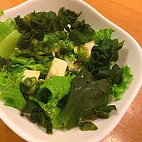 サニーレタスが無かったので、サラダ菜で。新玉ねぎとワカメをプラスしました。万能ダレでお豆腐や野菜が美味しく頂けました🎵