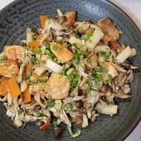 にんにくとバターの香りが食欲をそそる一品です。鮭は事前に酒と塩で下味をつけることで、より一層美味しく仕上がります。シャキシャキした長芋とプリッとした舞茸の食感が楽しく、片栗粉をまぶすことで調味料がしっかり絡んで風味豊かに。ご飯が進む味付けで、しめじやえのきなど他のきのこを加えてもアレンジ自在。簡単で時短なのに、ボリューム満点の人気レシピです。