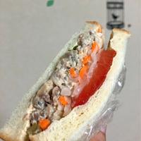休日の朝食用に作りました~。バケットではありませんが、食パンを軽くトーストし、サンドするだけで簡単においしくできました~。ツナのような味でした。😋🍴💕