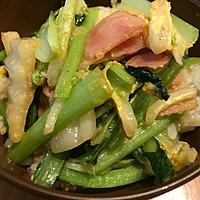 カット白菜と残り物小松菜があったので。豚バラはベーコンで代用。