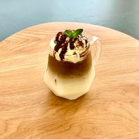 アイスカフェモカ風味のコーヒーフロートのご紹介です。チョコレートソースのコクとほろ苦いコーヒー、ホイップクリームと冷たいバニラアイスのミルキーな甘さがとてもよく合います。おもてなしのデザートにも喜ばれます。ぜひ、お試しくださいね。