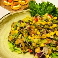 さつまいもと豚こま切れ肉、野菜をすべて同じ大きさに切って食べやすく、見た目もかわいいチョップドサラダにしました。味はテリマヨなのでお子様も食べやすいですよ。 先にさつまいもと豚こま切れ肉をテリヤキ味に焼くことで、テリヤキソースにさつまいもの甘さと豚肉の旨味がでて、味わい深いテリヤキソースになるのでお勧めです。是非作ってみてください。
