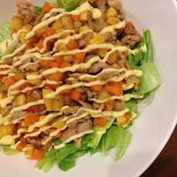 写真は混ぜる前の状態です。ジャンキーな感じもありつつ、芋が甘くて美味しいサラダでした!