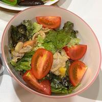 - 1 サニーレタス、紫玉ねぎ、ミニトマト約2cm角に切ります。