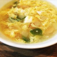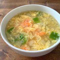エビとピーマンの中華スープに卵を加えてみました。卵はふんわり仕上げるために、スープにとろみをつけてから加えています。ボリュームのあるスープに仕上がりました。ショートパスタを加えても美味しいですよ。ぜひお試しくださいね、