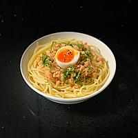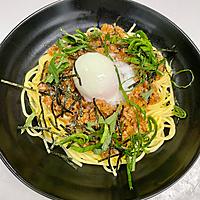 豚ひき肉はお好みの種類のひき肉でおいしくお作りすることができます。温泉卵は半熟のゆで卵でもおいしく召し上がることができます。スパゲティのゆで時間はパッケージに記載されている時間を目安にしてください。七味唐辛子の量はお好みで調整してください。 ご高齢の方や、2才以下の乳幼児、妊娠中の女性、免疫機能が低下している方は、卵の生食を避けてください。