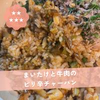 「まいたけと牛肉のピリ辛チャーハン」の作り方を簡単で分かりやすいレシピ動画で紹介しています。