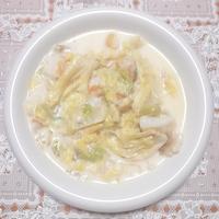 タラと白菜にほんのり甘みがあって、寒い日にぴったりなシチューです。タラに旨味があるのでシンプルな食材で美味しいクリームシチューができますよ。とろっと柔らかく煮えた白菜が楽しめる一品です。ぜひ作ってみてくださいね。
