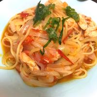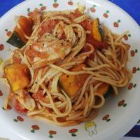 たっぷりかぼちゃと鶏ささみのトマトソーススパゲティ レシピ・作り方