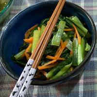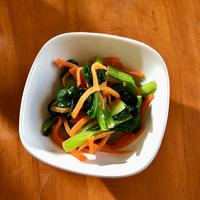 優しい辛さが美味しい小松菜の和え物のレシピです。酸味が食欲をそそり、お箸が止まらないおかずに仕上がりました。和の食卓に一品いかがですか?緑とオレンジ色が華やかにしてくれます。簡単に出来上がるので是非お試しくださいね。