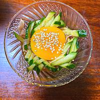- 4 器に盛り付け卵黄をのせ、白いりごま、糸唐辛子を散らしたら出来上がりです。