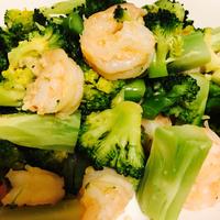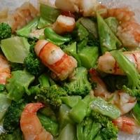 - 準備 ブロッコリーを一口大に切って水洗いします。 むき海老を下処理して水気をふきます。