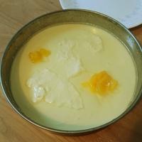 余りで、黄桃のゼリーをカップで作りクラッシュにして、切ったチーズケーキに載せました!写真の後に思いつき✨