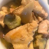 - 4 鶏もも肉に火が通ったら(A)を加えて弱火で炒め、全体に味がなじんだら火から下ろします。