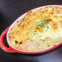 カニの旨味とクリーミーなホワイトソースが見事に調和した贅沢な一品です。マカロニの上にブロッコリーや舞茸、エリンギなどの野菜を加えることで彩りと食感が豊かになります。カニ缶の汁まで使うことで風味がさらにアップし、三種のチーズのコクと相まって本格的な味わいに。バゲットを添えれば、まるでレストランの一皿のような上品なグラタンの完成です。