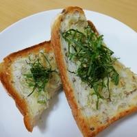 初めてトーストにしらすを使いました。マヨネーズとチーズで思ったよりもボリュームがありました。大葉の風味が爽やかで美味しかったです。