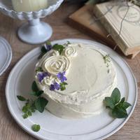 甘くて濃厚なバタークリームをたっぷりとデコレーションした、ホールケーキのご紹介です。今回は冷凍ミックスベリーをジャムにして挟みました。白いクリームに赤いベリージャムが映えて、とっても綺麗ですよ。お好みのデコレーションでお楽しみくださいね。