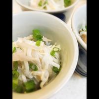 - 1 大根は皮を剥き5mm幅の輪切りにして、千切りにします。