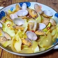 キャベツ、玉ねぎと家にある野菜でアサリ料理に幅が広がりました。しかも美味しい!リピします!