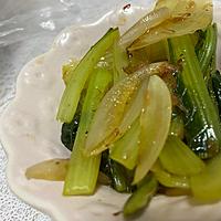 - 1 小松菜は根元を切り落とし、3cm幅に切ります。