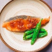 さっぱりサーモンの梅照り焼きはいかがでしょうか。叩いてペースト状にした梅干しを加えて作る、酸味がきいた甘辛照り焼きに仕上げました。ごはんのお供にぴったりなので、ぜひ作ってみてくださいね。