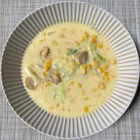 コーンクリームたっぷりで作りました。ホタテの旨味が出ていて美味しかったです。