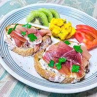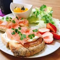 リピです。今回は切らずトーストにしました。マーマーレードものせてみました。ジャムの甘みと生ハムの酸味とクリームチーズがマッチして👍
