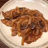 豚ロース肉を使った本格的な一品です。玉ねぎやマッシュルーム、しめじなどのきのこ類との相性抜群で、赤ワインの香り高いコク深いソースが絶品。お肉は焼いたら一度取り出してソースを作ると、パサつかず柔らかな食感に仕上がります。ケチャップとにんにくを加えるアレンジも美味。追いバターで風味をプラスすれば、さらに味わい深い一皿になります。冷めても美味しく、お弁当のおかずにもぴったりです。