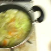 - 6 (A)を入れて中火で10分ほど煮込み、野菜に火が通ったら火から下ろします。