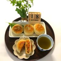 意外と簡単にもっちりしたおやきが出来るので余った煮物や炒め物を刻んで作っています。今回は人参しりしりを包みました。