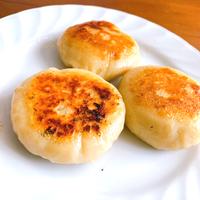 - 3 中火で熱したフライパンにサラダ油をひき、2を入れて焼きます。両面にこんがりと焼き色が付くまで焼きます。